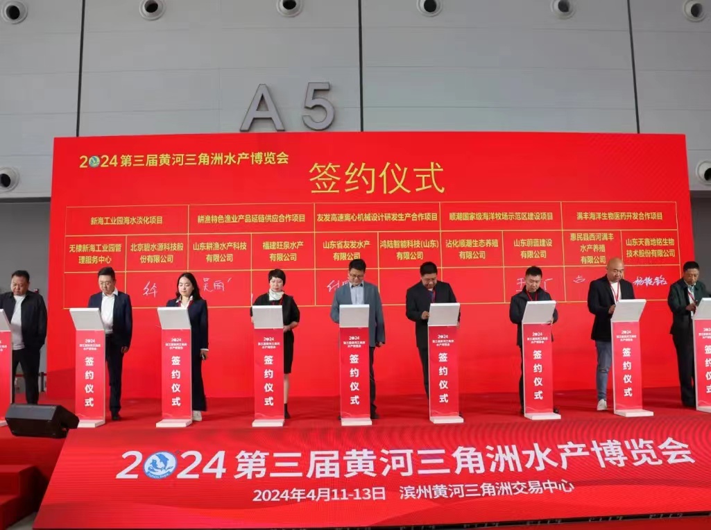 今年黄河三角洲水产博览会签约项目共10个,签涵盖水产品加工、水产品交易市场、水产购销、水产养殖、机械研发、文化旅游、基地建设等产业。